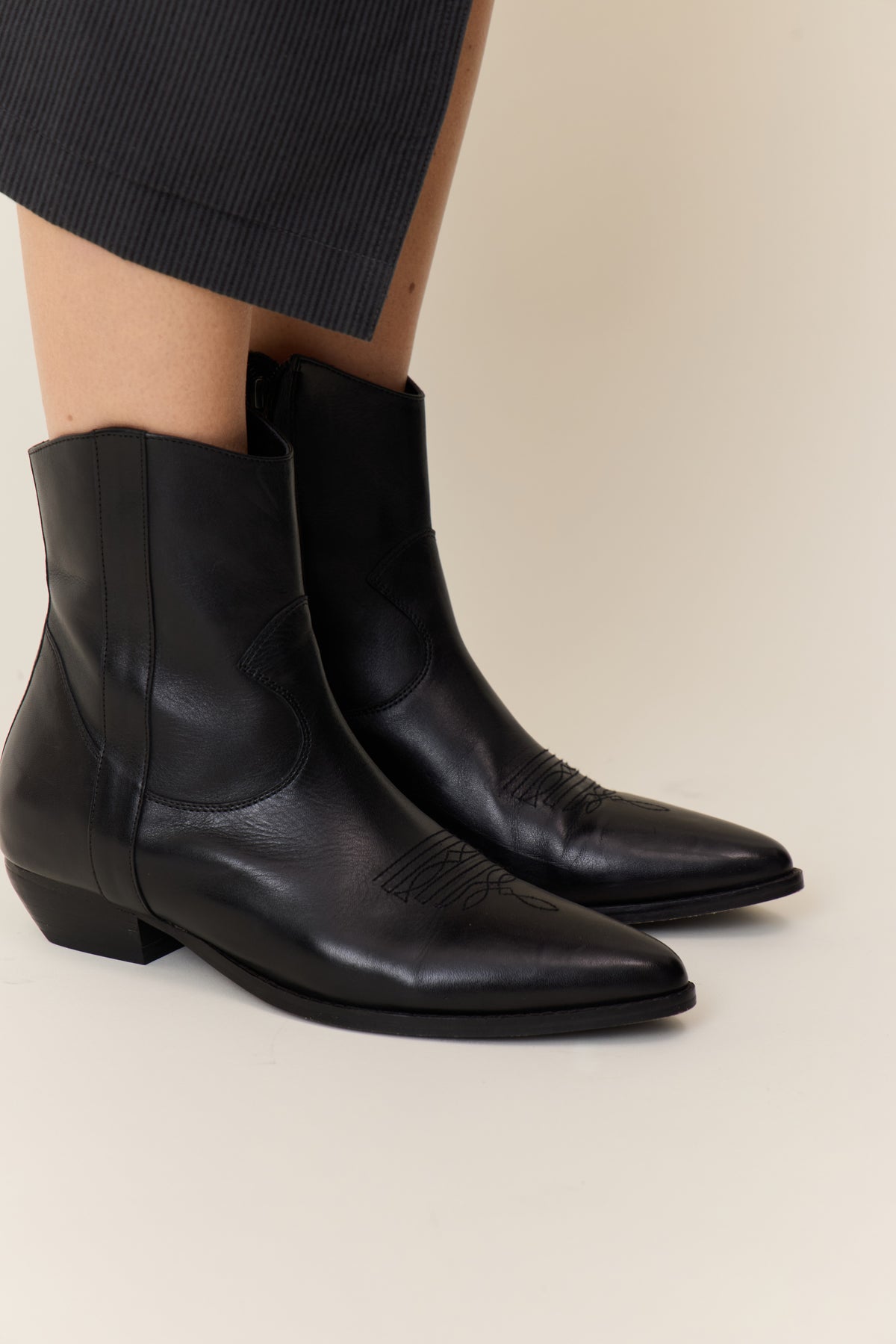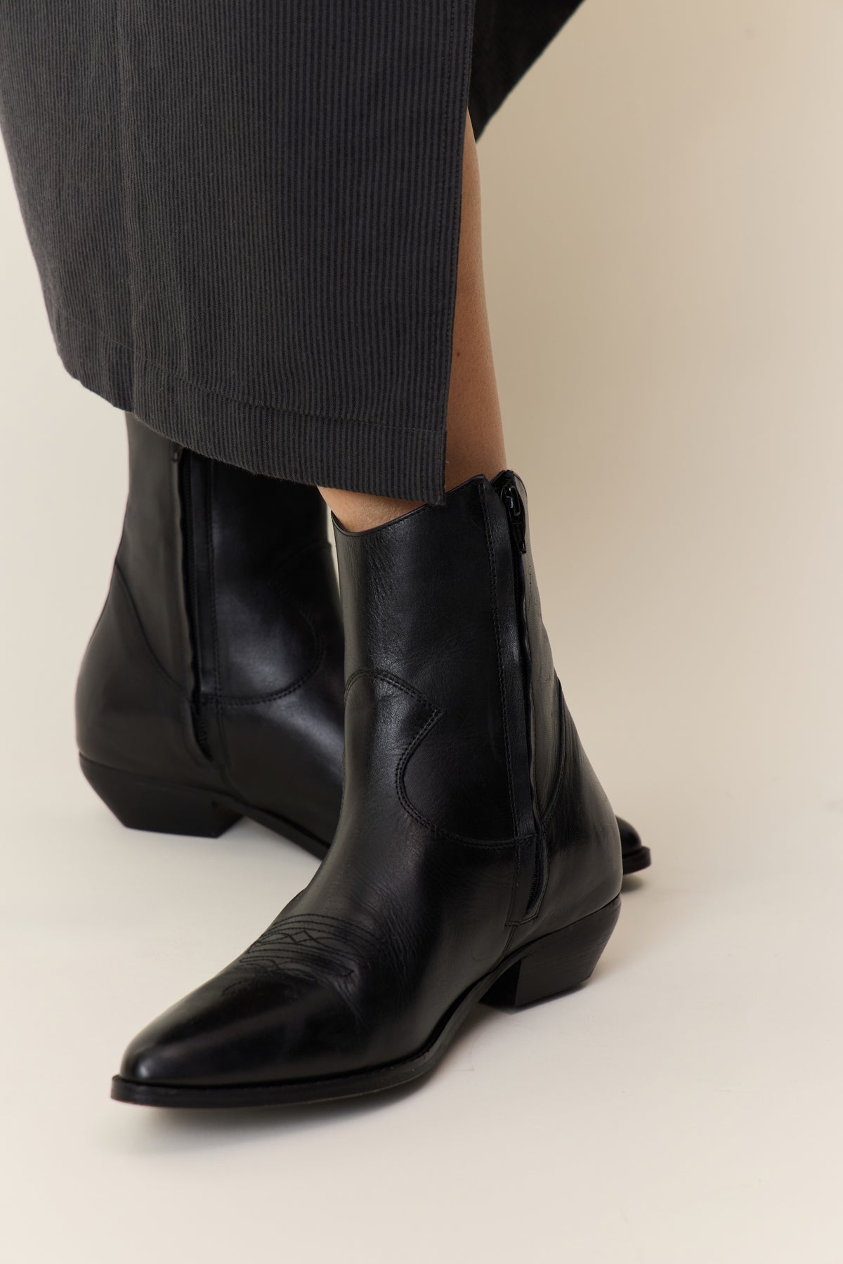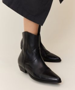 Les bottines West PLN revisitent le style western avec une attention portée aux détails. Le bout pointu et le talon biseauté sculptent une silhouette contemporaine, tandis que les surpiqûres et les empiècements latéraux mettent en avant le savoir-faire de la marque. La tige montante assure une allure affirmée, à mixer sans effort avec un jean brut ou une jupe midi pour twister votre vestiaire urbain.