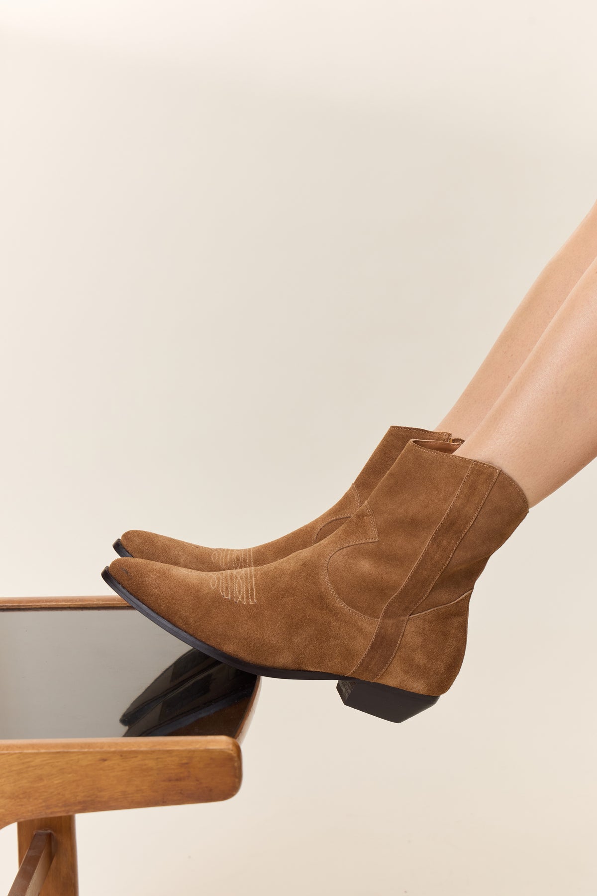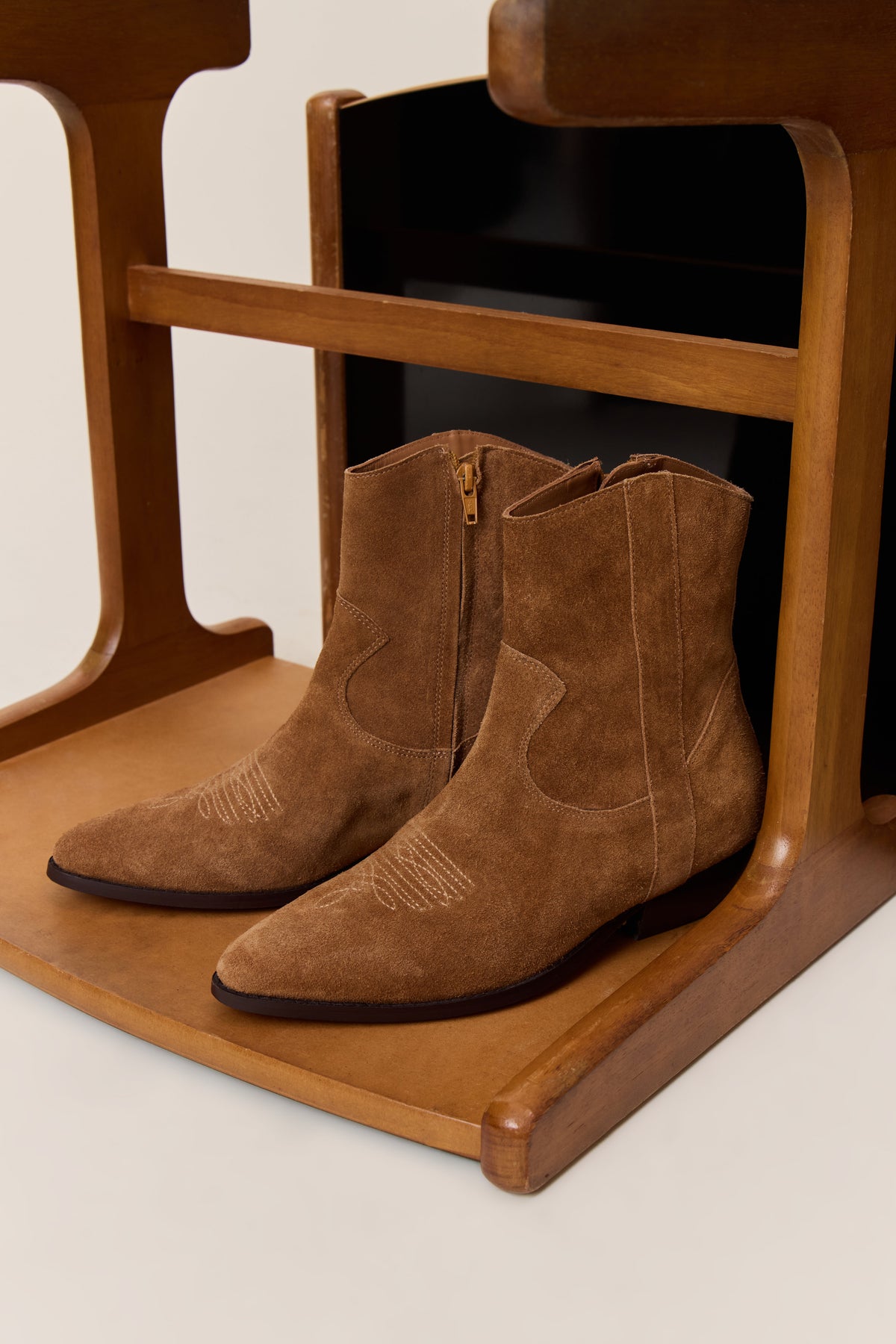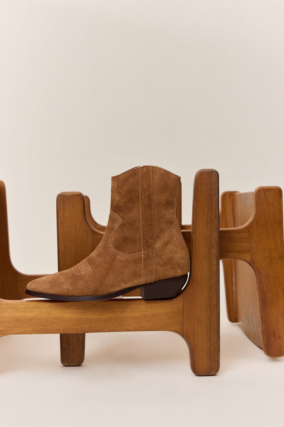 Les bottines West PLN revisitent le style western avec une attention portée aux détails. Le bout pointu et le talon biseauté sculptent une silhouette contemporaine, tandis que les surpiqûres et les empiècements latéraux mettent en avant le savoir-faire de la marque. La tige montante assure une allure affirmée, à mixer sans effort avec un jean brut ou une jupe midi pour twister votre vestiaire urbain.