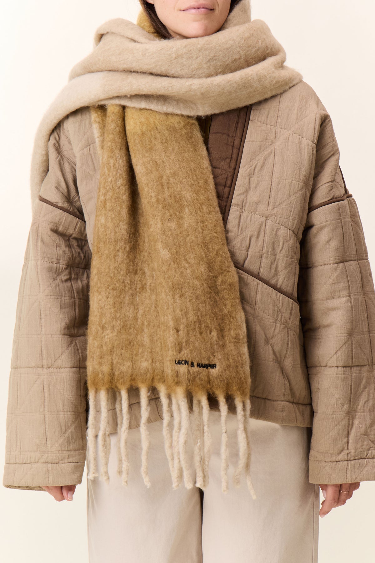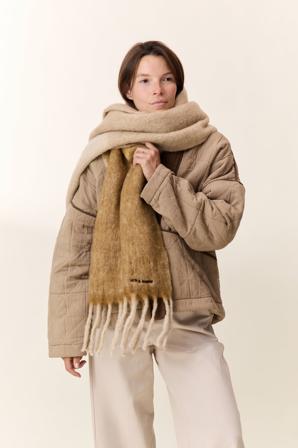 L’écharpe Elton Strp propose un format ample pensé pour envelopper avec style. Sa texture apporte un toucher moelleux et un tombé souple, tandis que les franges aux extrémités soulignent la signature Leon & Harper. Le motif à larges bandes structure visuellement la pièce et lui confère tout son caractère. Elle complète un manteau uni pour une silhouette affirmée en hiver.