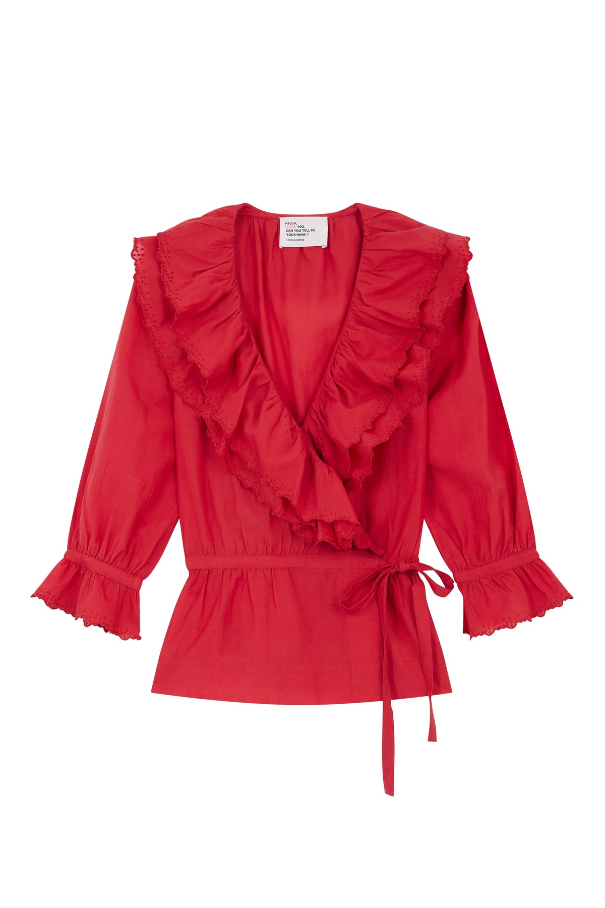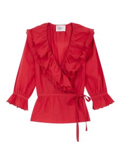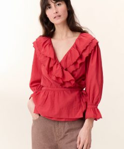 La blouse cache-coeur Cala Plain séduit par son charme romantique et ses détails délicats. Avec ses volants élégants et brodés qui habillent le décolleté, son tissu léger et sa ceinture, elle souligne la silhouette de la femme Leon & Harper et incarne la féminité !