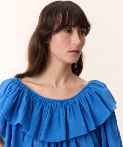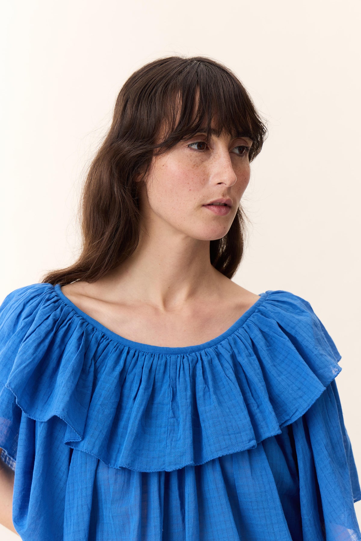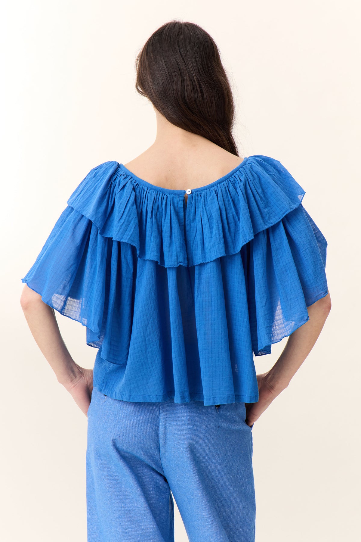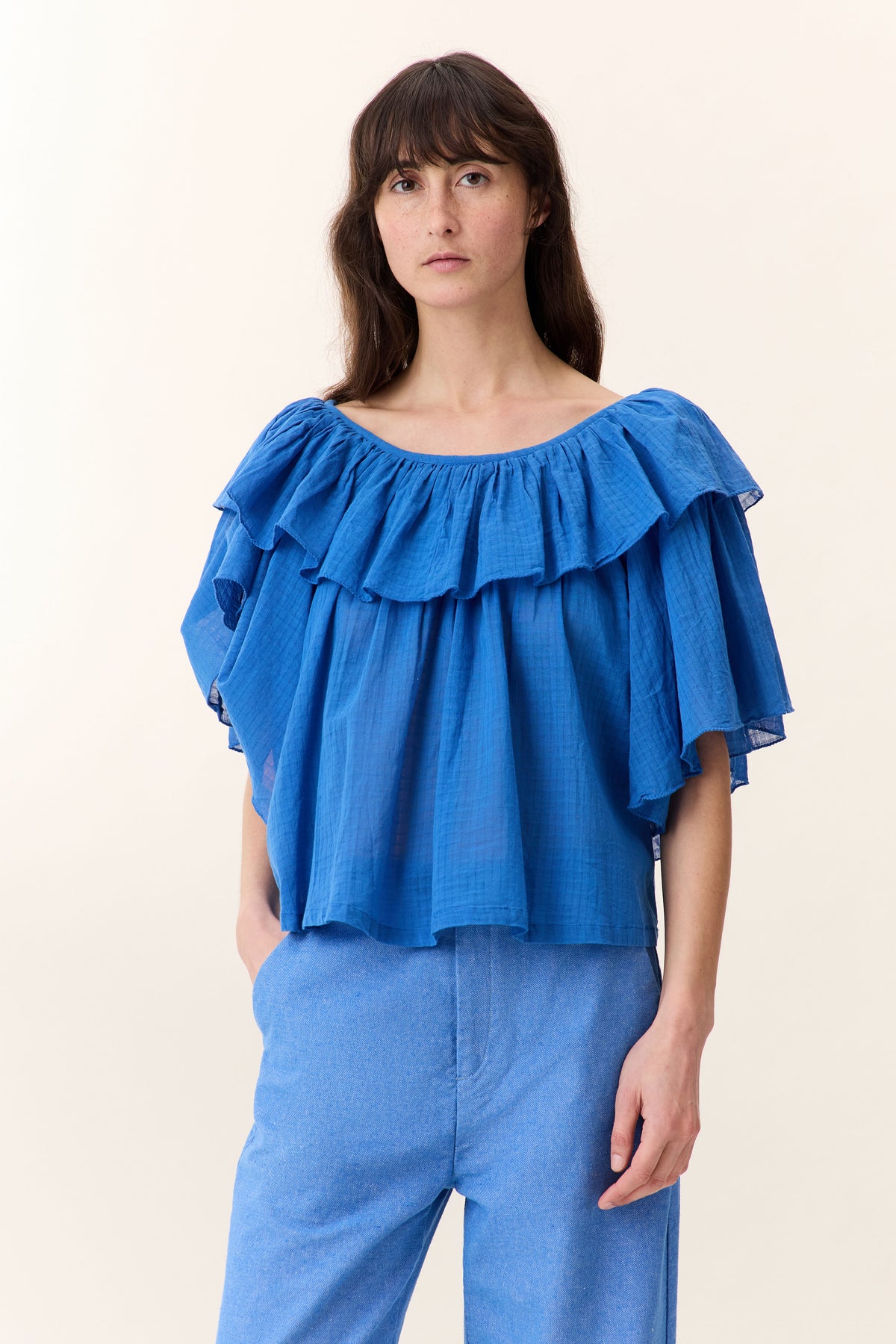 La blouse Casey Plain ajoute une touche de fraîcheur. Cette pièce élégante séduit par sa légèreté et ses détails travaillés. Son col rond évasé est sublimé par un large volant qui encadre délicatement les épaules, apportant un charme romantique à la femme Leon & Harper.