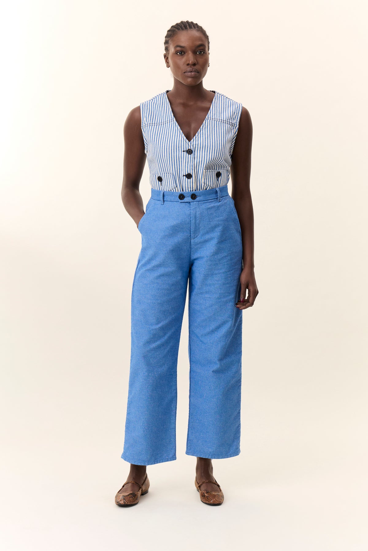 Doté d’une coupe flare élégante et d’une taille haute flatteuse, le jean Philo Plain structure et élance la silhouette de la femme Leon & Harper avec finesse. Véritable incontournable du dressing, il incarne un style rétro intemporel et une féminité affirmée.