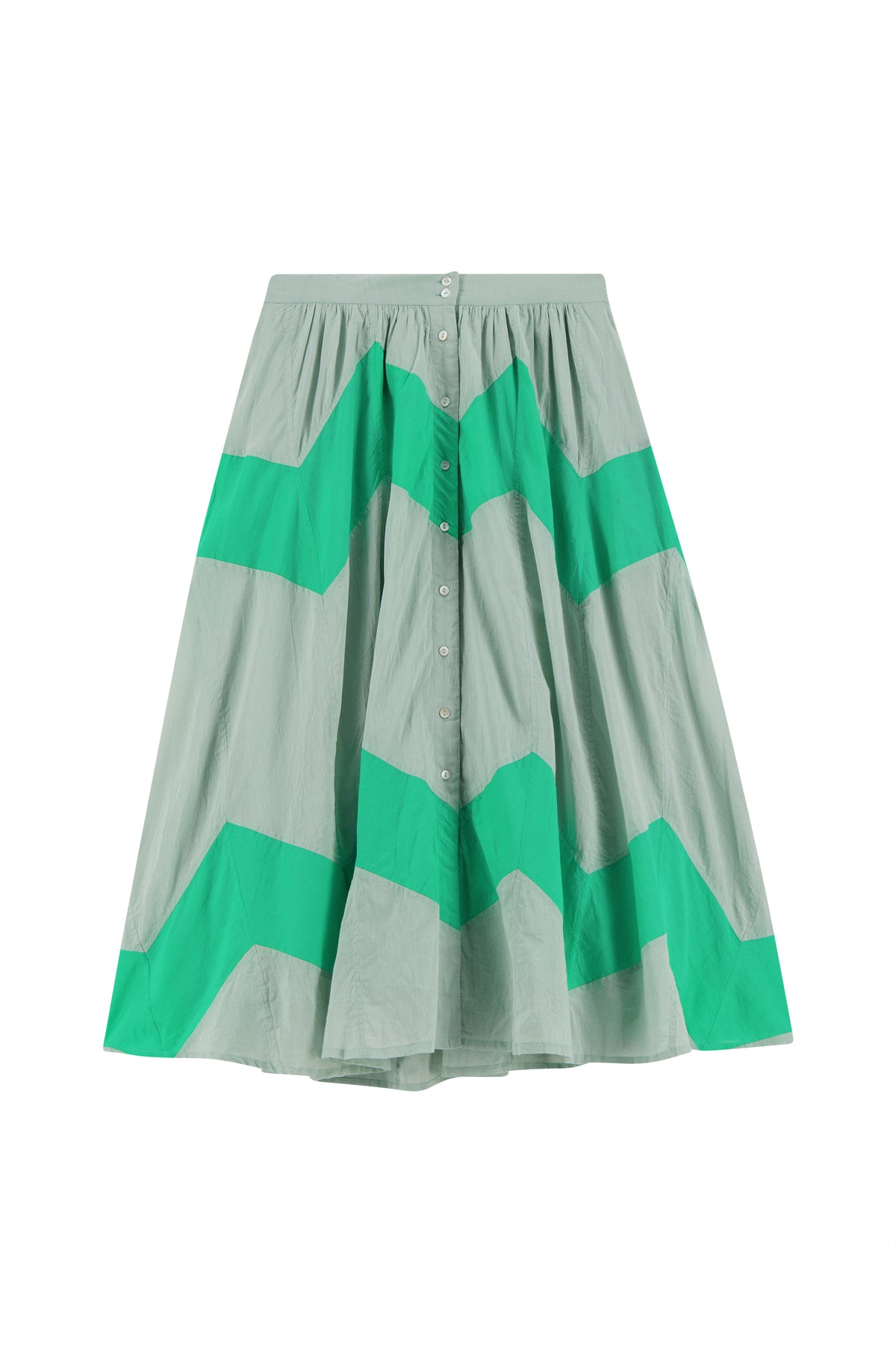 La jupe Jerem Patch joue avec les volumes et les motifs pour offrir une allure féminine et audacieuse. Ses empiècements de motifs chevrons ajoutent une dimension graphique unique, tandis que sa coupe fluide sublime avec finesse le mouvement aérien. Une pièce incontournable pour les femmes Leon & Harper en quête d’originalité.