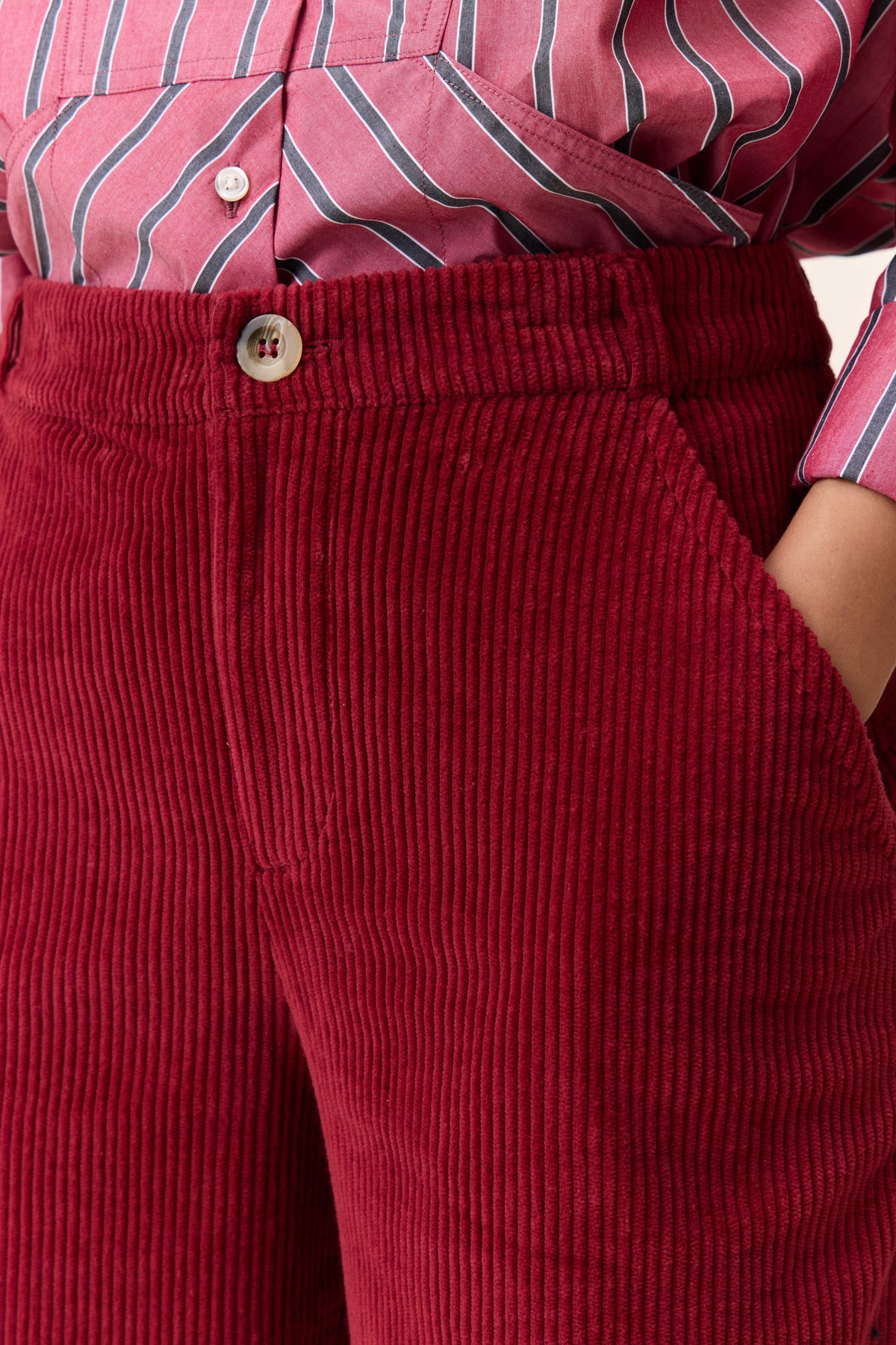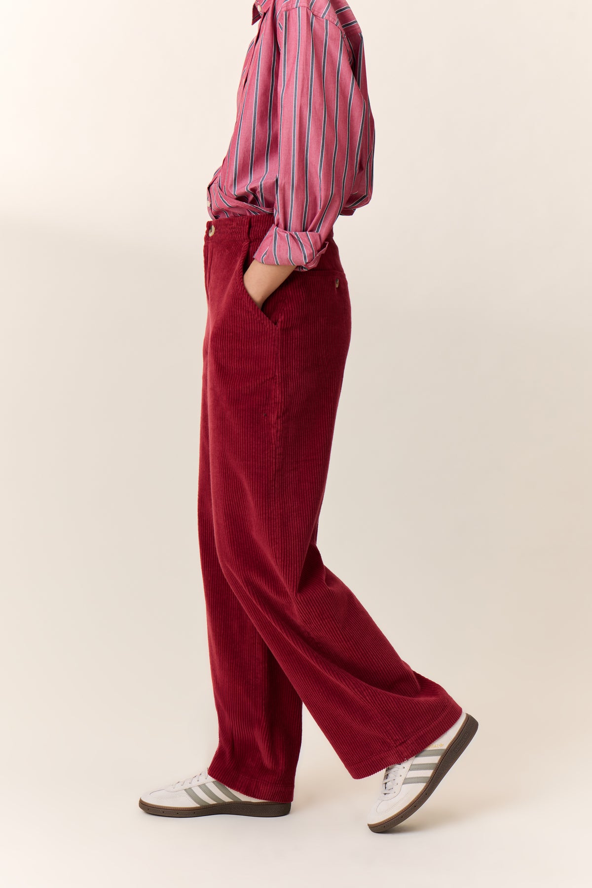 Pensé pour révéler l’attitude décontractée propre à Leon & Harper, le pantalon Pamira PLN affirme un volume large et une taille haute structurée. Son velours côtelé 100% coton biologique offre une texture marquée, rehaussée par des passants de ceinture, une fermeture boutonnée et des poches latérales pratiques. Au dos, deux poches passepoilées, chacune fermée par un bouton, signent la finition. Ce modèle accompagne avec justesse un pull oversize ou une chemise fluide pour composer une silhouette contemporaine.