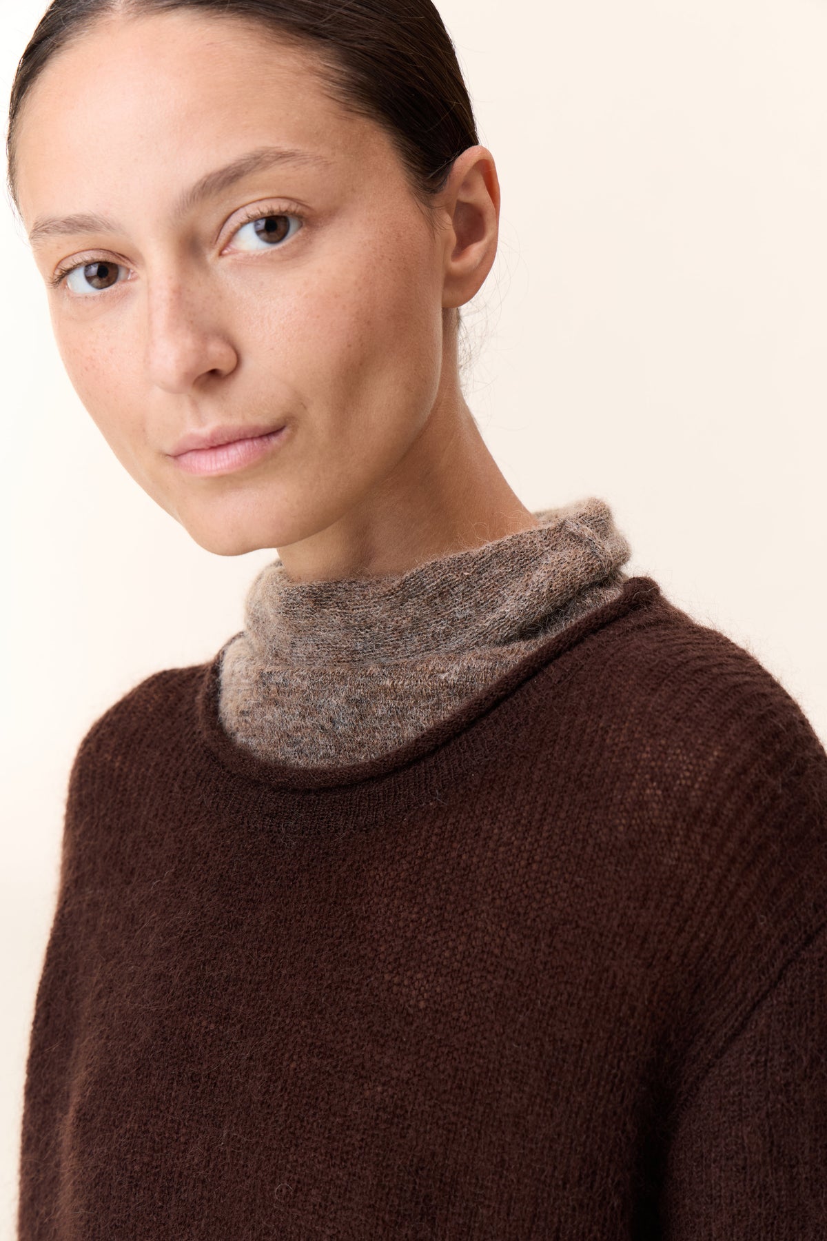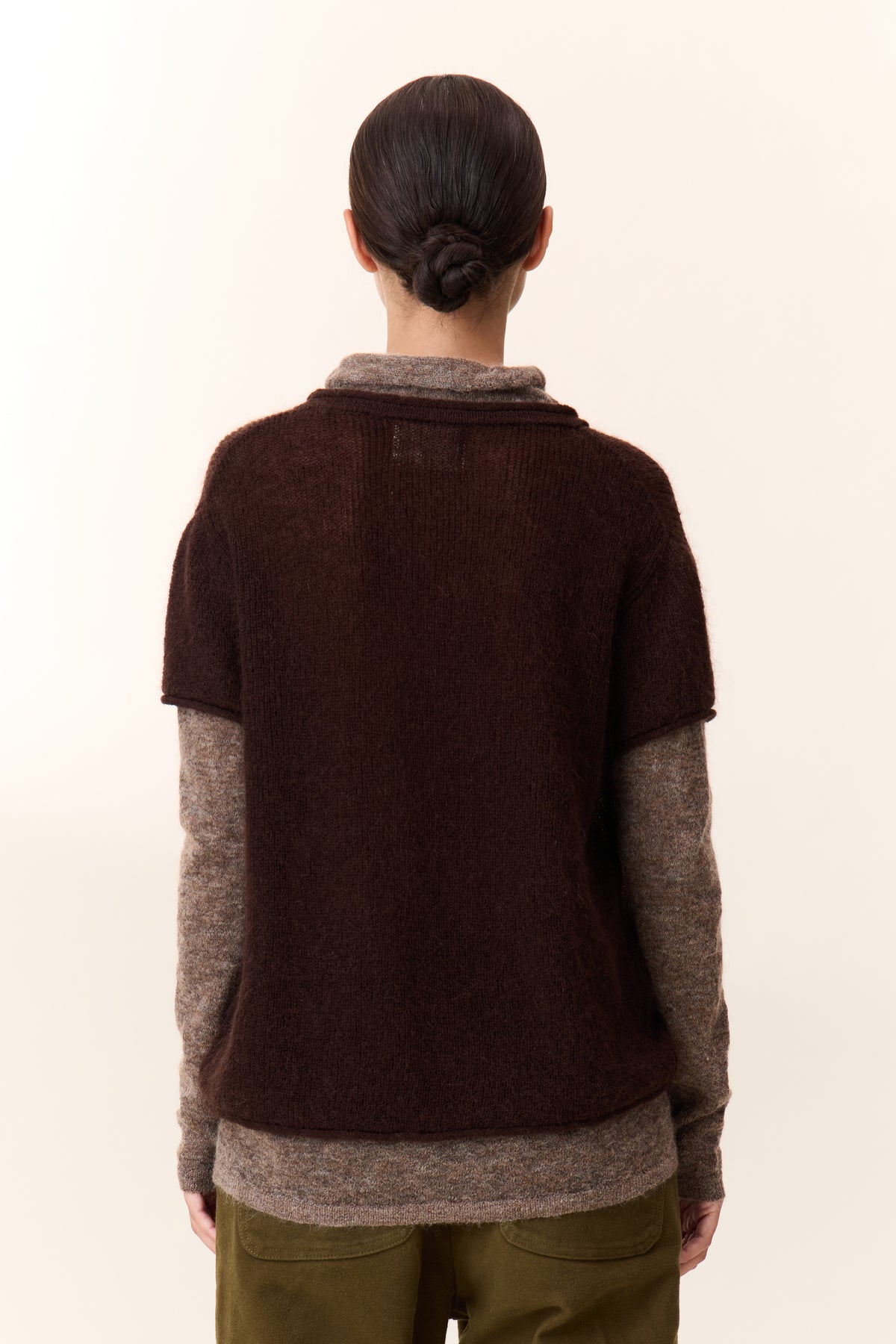 Le pull Mollie Dual par Leon & Harper explore la superposition avec une silhouette pensée pour la liberté de mouvement. Le jeu de superposition combine un pull extérieur ample à manches courtes et un col roulé à manches longues, offrant un contraste de volumes et une allure moderne. Sa maille, mélange de laine et de mohair, apporte légèreté et fluidité, tandis que les finitions précises témoignent du savoir-faire de la marque. Il se porte idéalement avec un pantalon près du corps ou un jean.