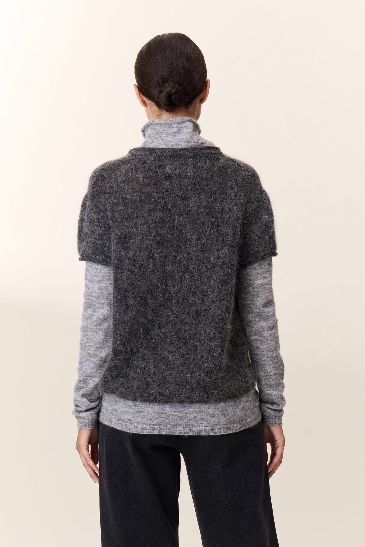 Le pull Mollie Dual par Leon & Harper explore la superposition avec une silhouette pensée pour la liberté de mouvement. Le jeu de superposition combine un pull extérieur ample à manches courtes et un col roulé à manches longues, offrant un contraste de volumes et une allure moderne. Sa maille, mélange de laine et de mohair, apporte légèreté et fluidité, tandis que les finitions précises témoignent du savoir-faire de la marque. Il se porte idéalement avec un pantalon près du corps ou un jean.