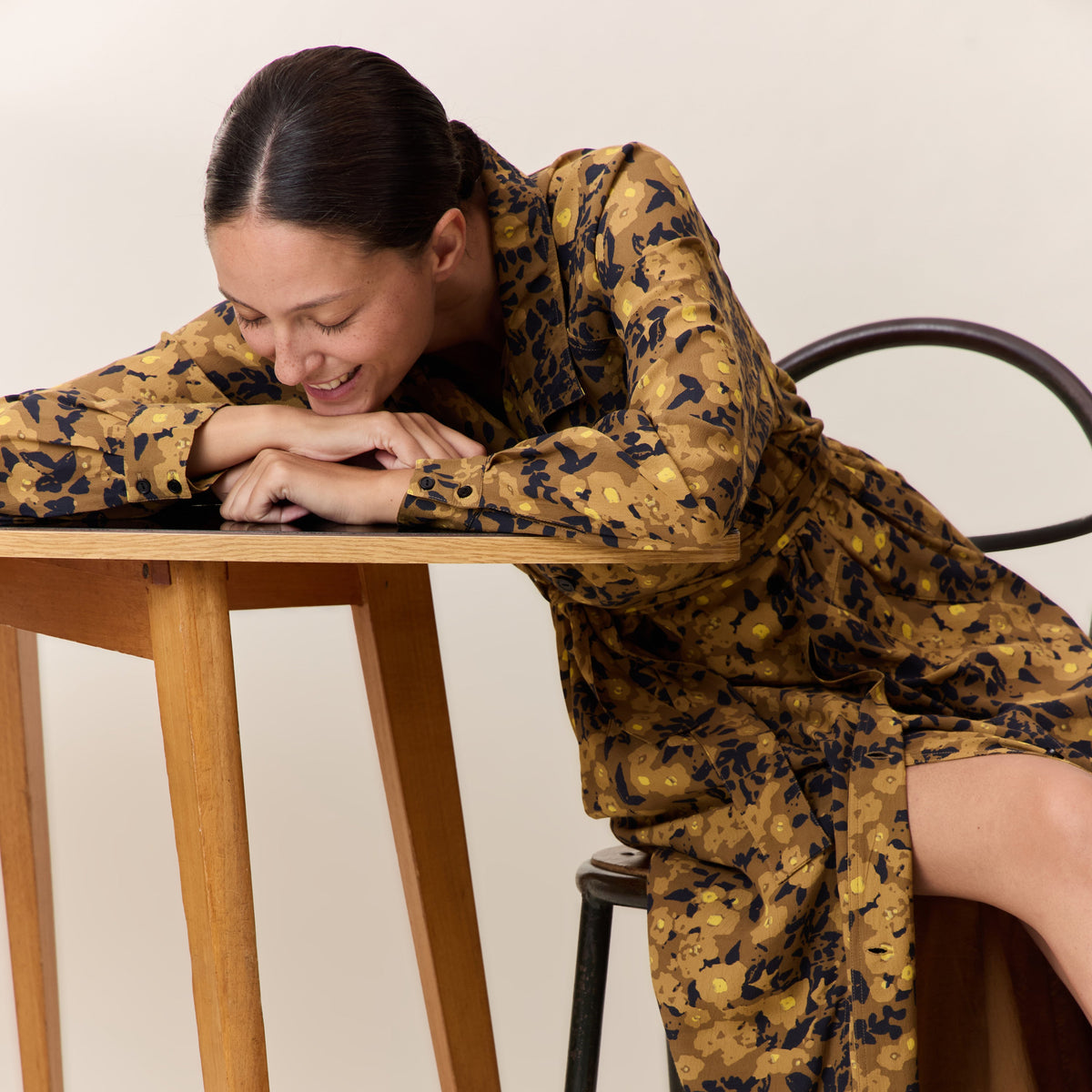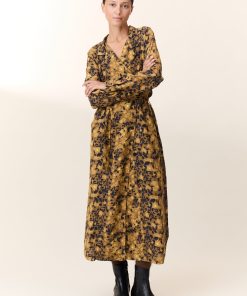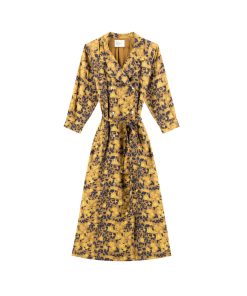 La robe Reda Flower propose une interprétation rétro-chic de la silhouette féminine avec une coupe midi à l’imprimé fleuri. Le col chemise, structuré par une fermeture portefeuille boutonnée, souligne le travail précis des finitions. Les manches longues, ponctuées de poignets boutonnés, et la ceinture à nouer accentuent la liberté d’ajuster la pièce à votre style. Idéale avec des bottes pour un look signature.