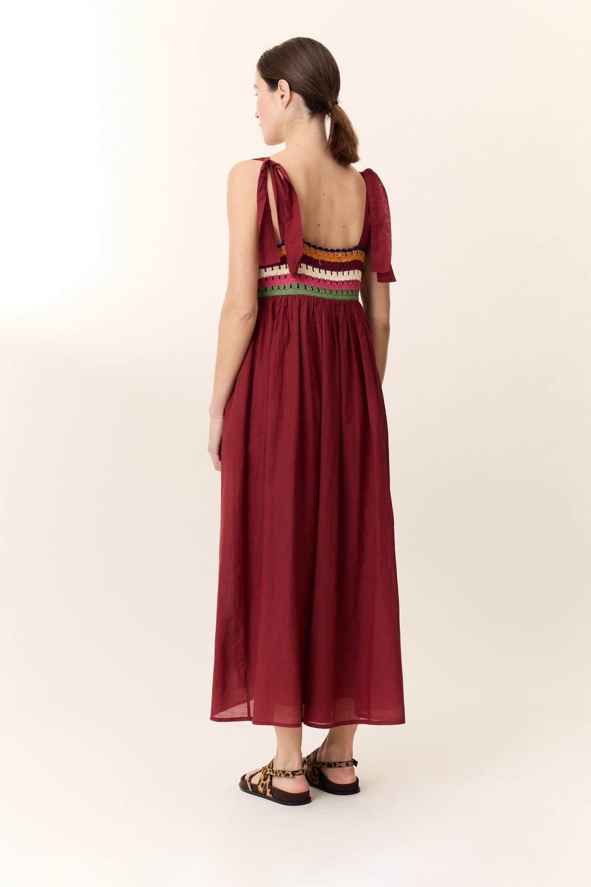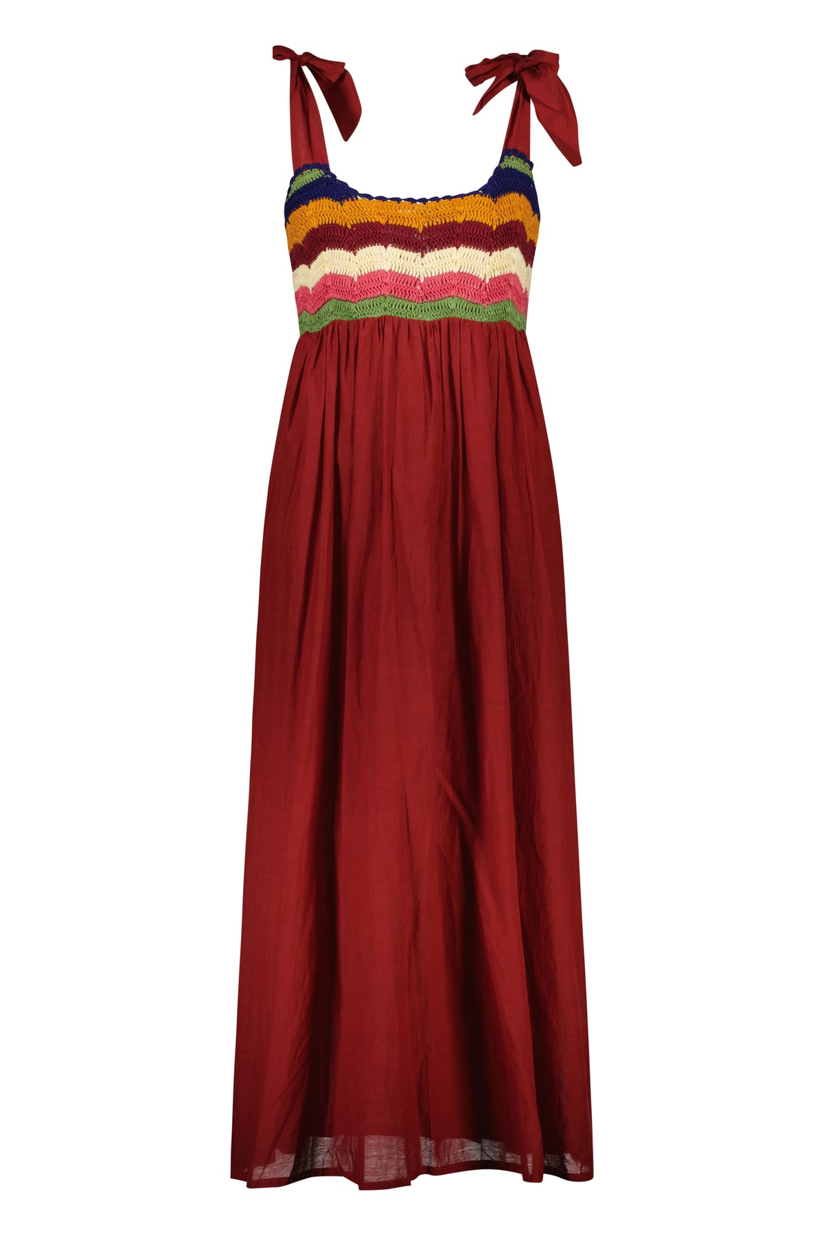 La robe Ricq Crochet se distingue par son jeux de matière avec son plastron en crochet fait main et son voile en coton. Ses jolies bretelles à nouer et son décolleté dégagé subliment la silhouette féminine de la femme Leon & Harper offrant une allure bohème et élégante.
