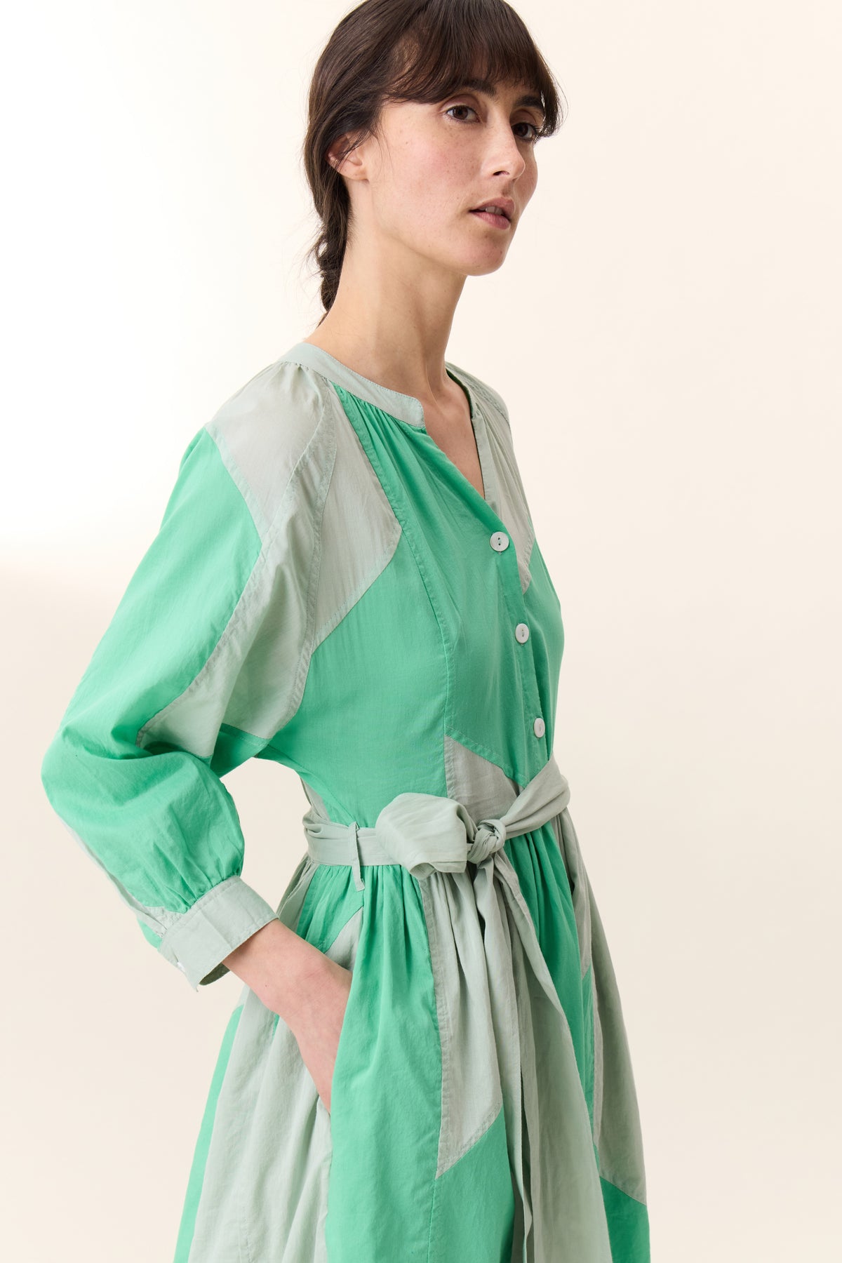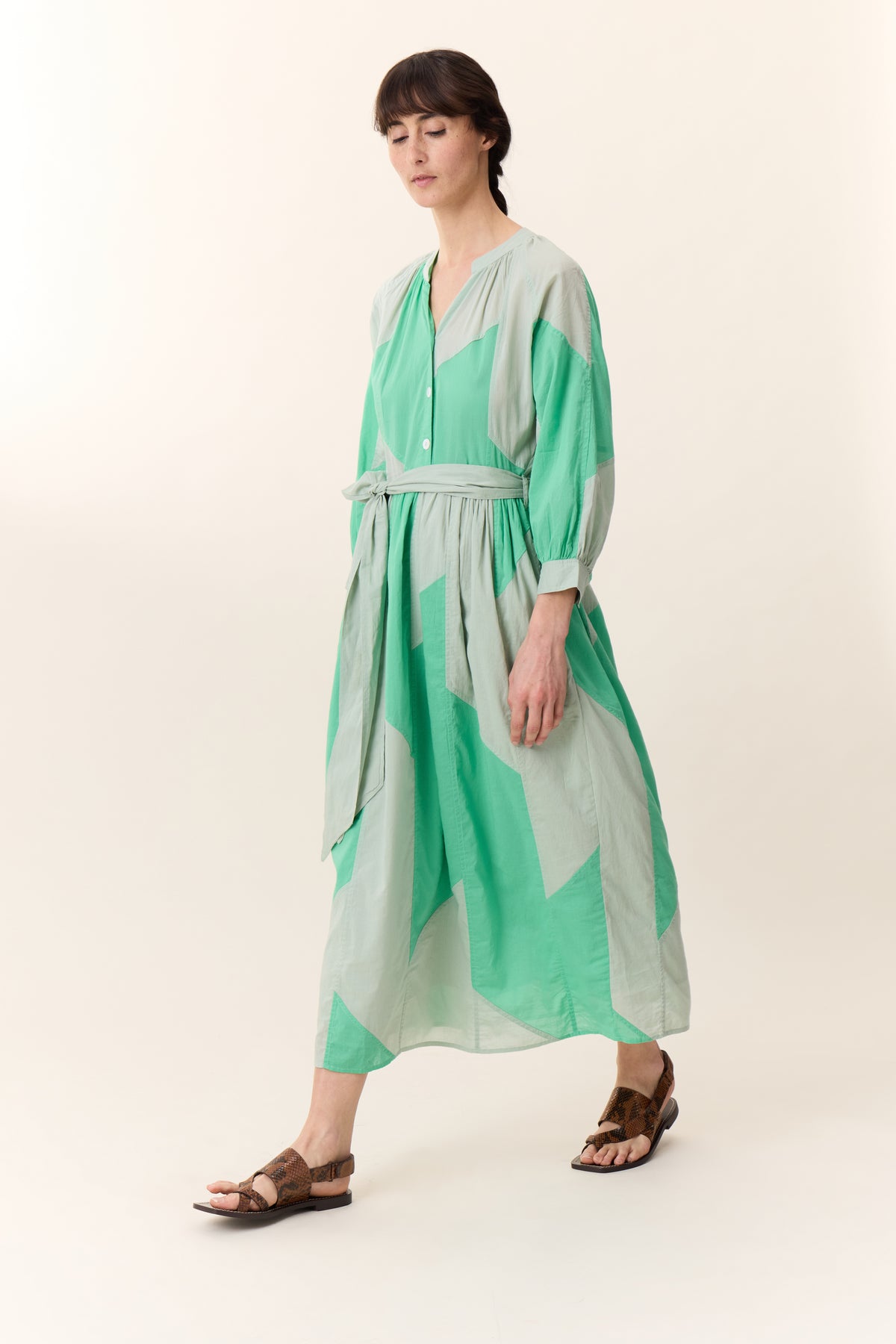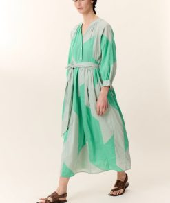 La robe Runa Patch est une pièce élégante et moderne grâce à son motif graphique en patchwork nuancé. Sa coupe ample, sa ceinture nouée à la taille et ses manches raglans longues légèrement bouffantes ajoutent une touche sophistiquée et décontractée à la fois. C’est la robe idéale pour une tenue de jour chic ou une soirée estivale.