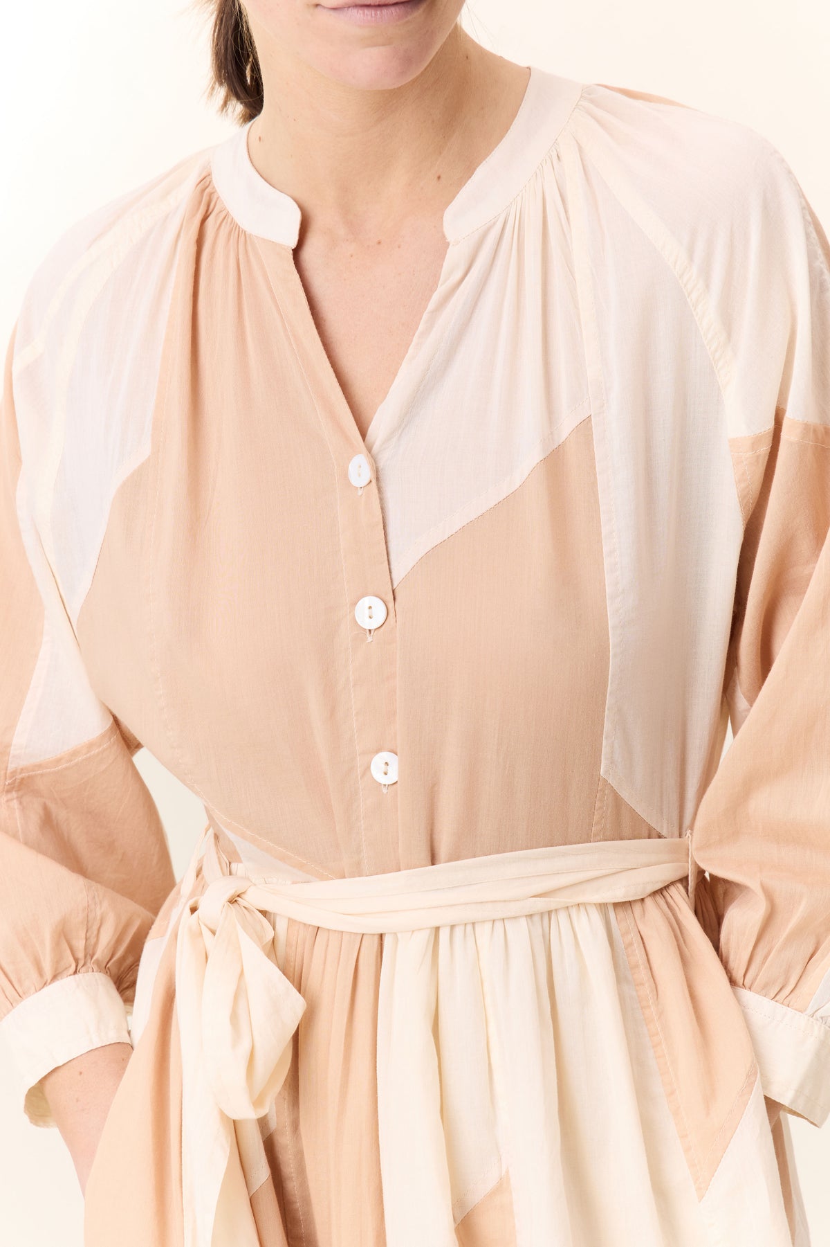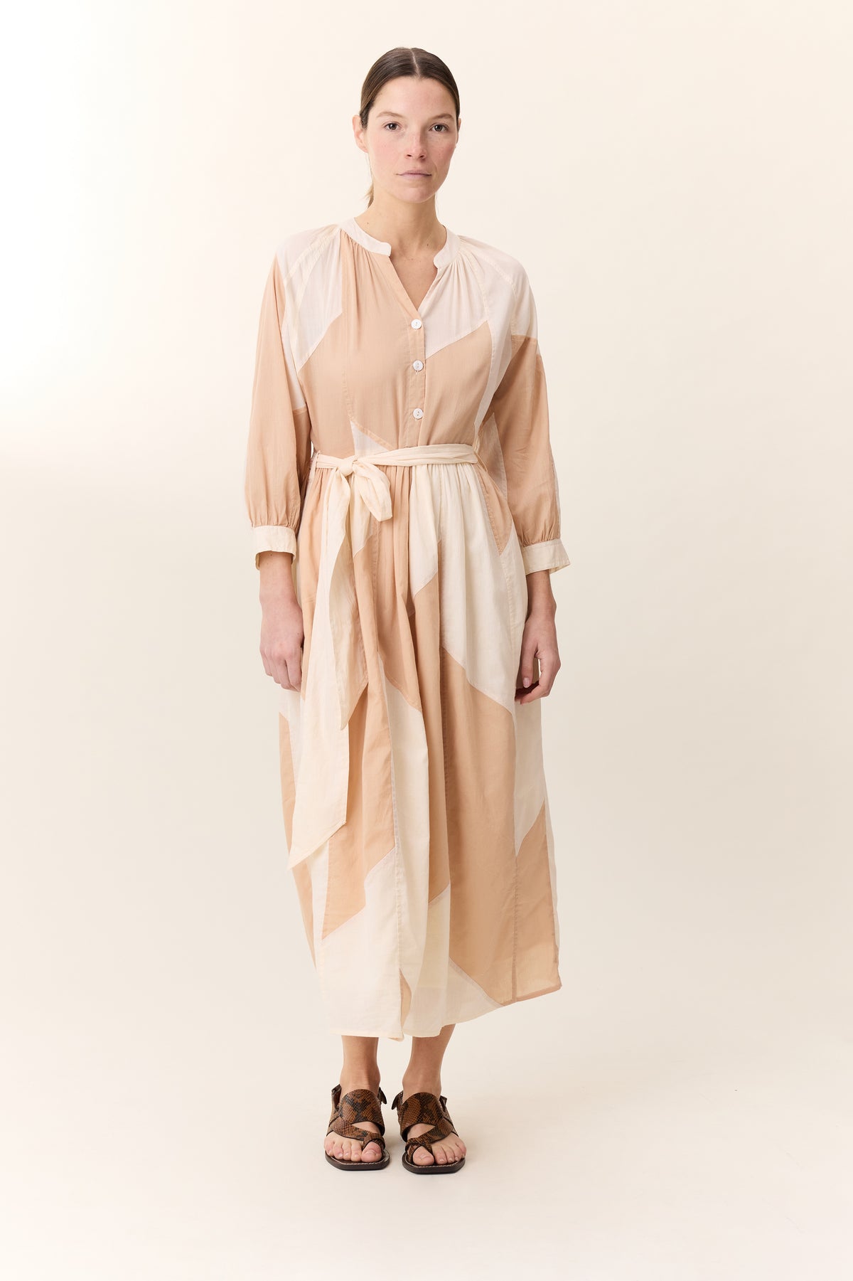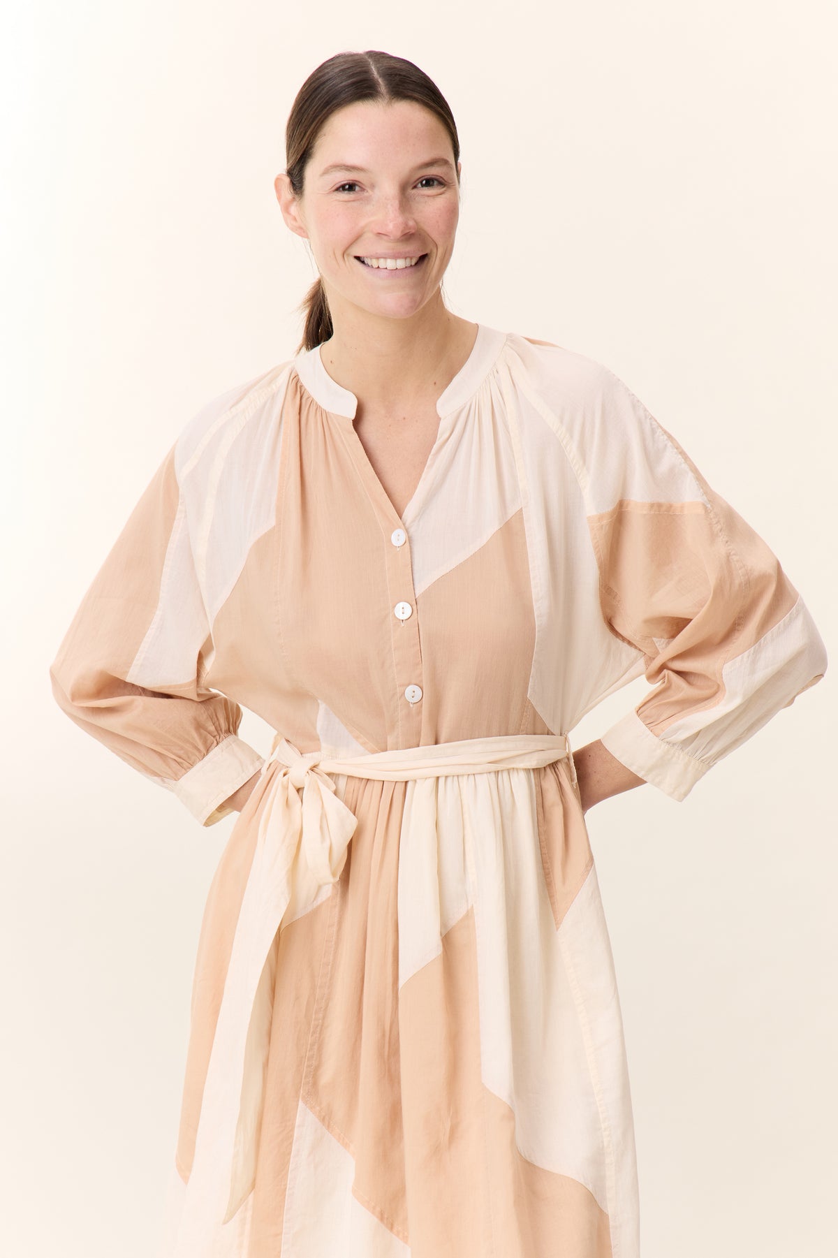 La robe Runa Patch est une pièce élégante et moderne grâce à son motif graphique en patchwork nuancé. Sa coupe ample, sa ceinture nouée à la taille et ses manches raglans longues légèrement bouffantes ajoutent une touche sophistiquée et décontractée à la fois. C’est la robe idéale pour une tenue de jour chic ou une soirée estivale.