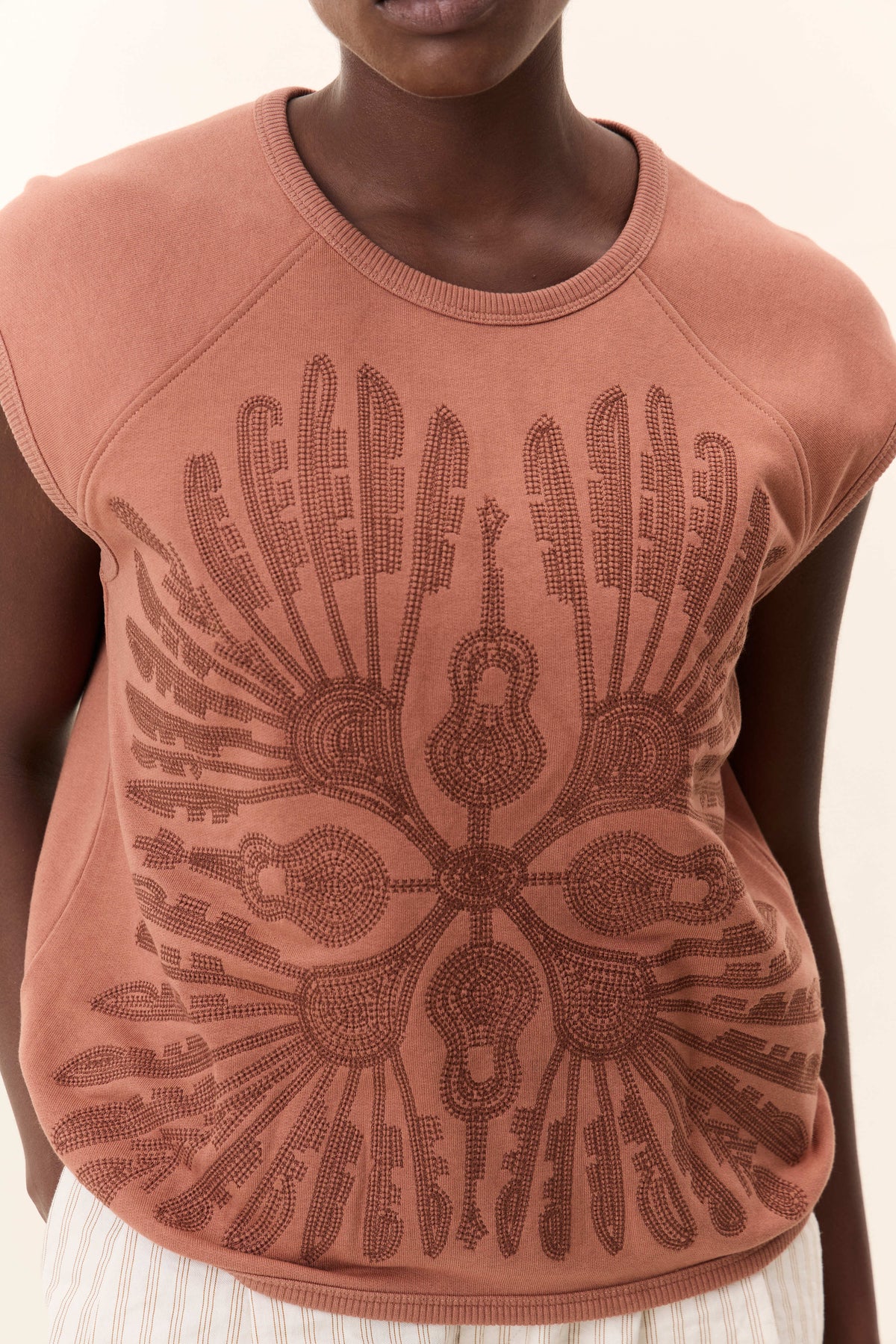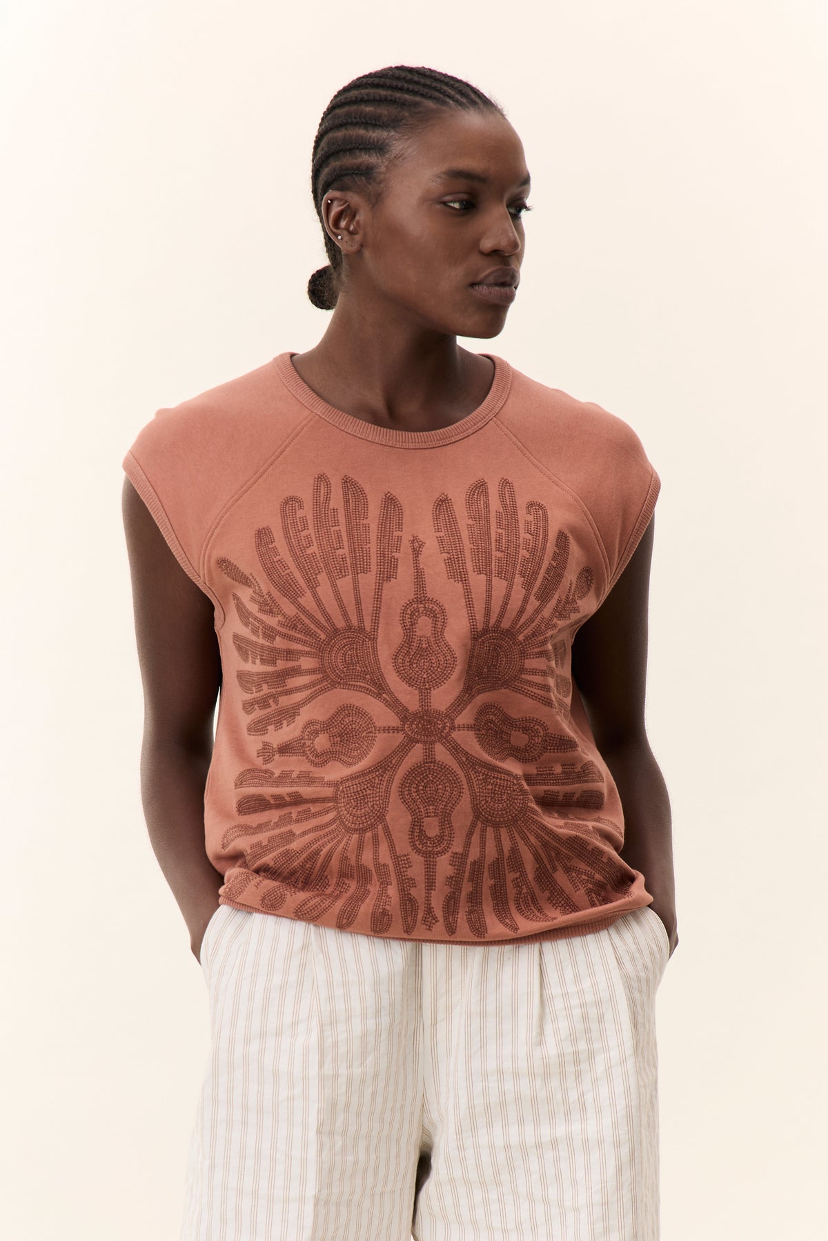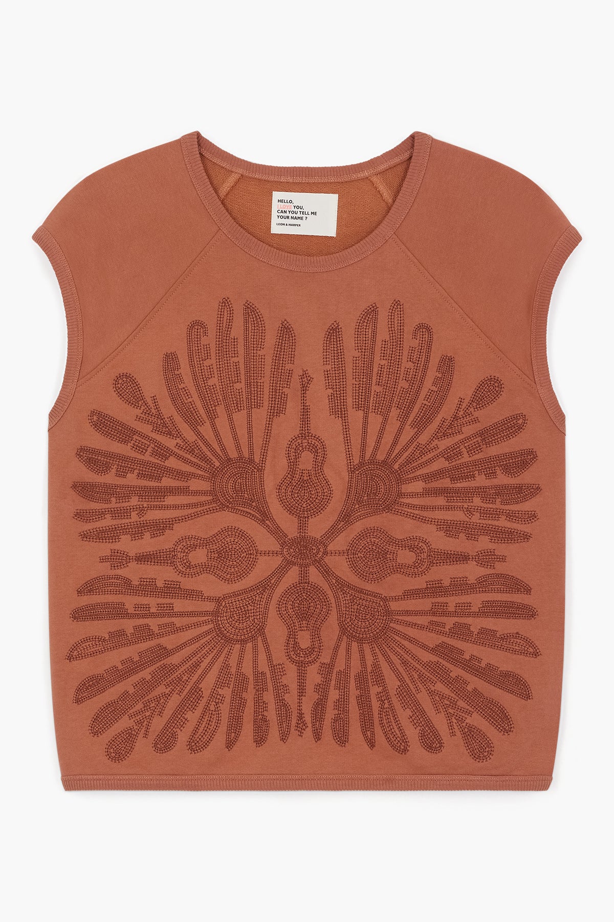 Le sweat Sirop Guitar est une pièce originale parfaite pour un look casual tendance. Son design unique met en avant un imprimé graphique de guitares, apportant une touche bohème et musicale. Sans manches, il permet à la femme Leon & Harper de jouer la superposition.