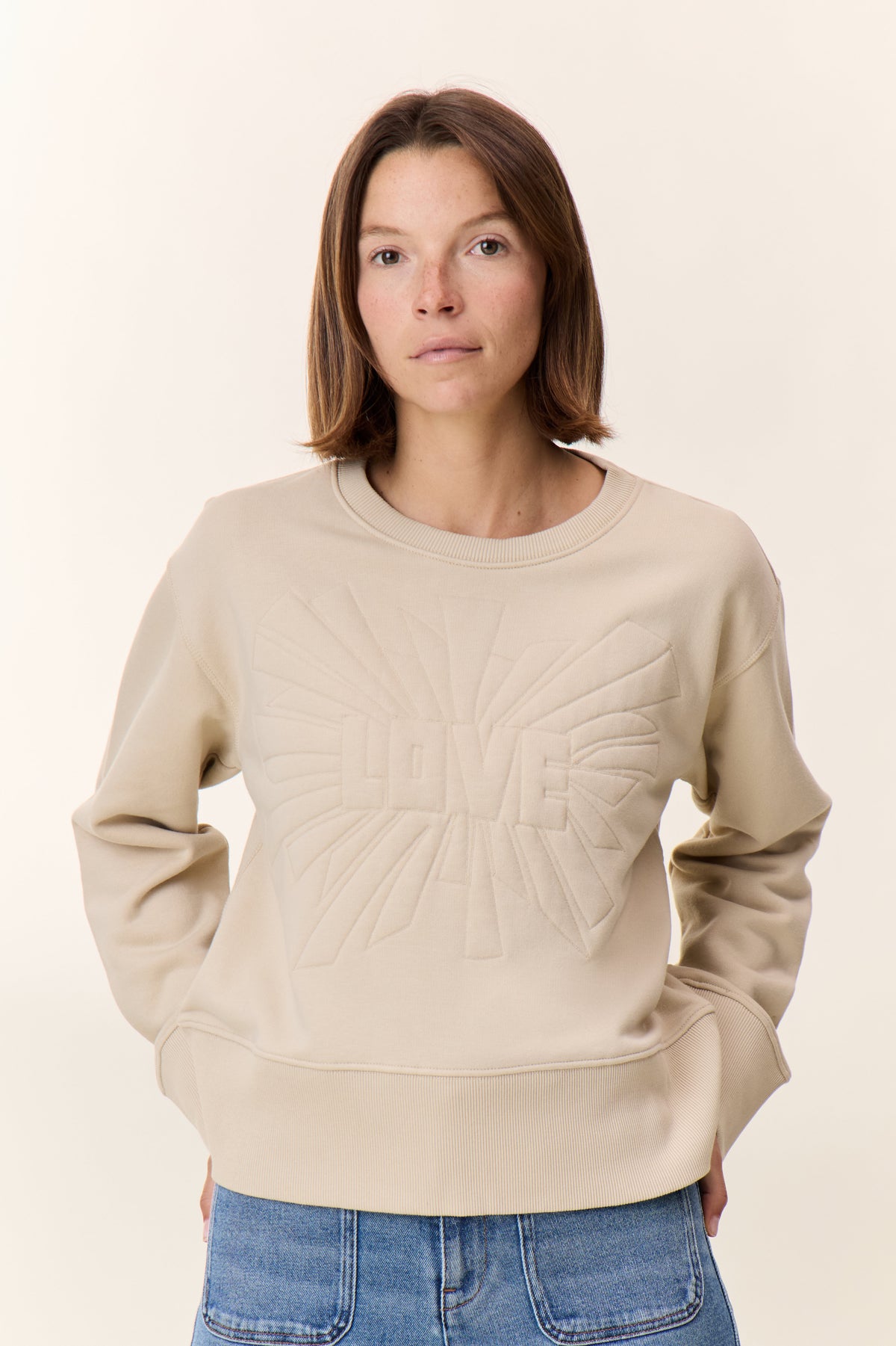 Le sweat Sorbet Love revisite l’esprit pop de Leon & Harper avec son motif « LOVE » en relief, signature d’une approche créative du casual. Sa coupe souple, le col rond classique, et les finitions bords-côtes aux poignets et à la taille garantissent confort et maintien. Une pièce marquante qui dynamise vos jeans et pantalons larges.
