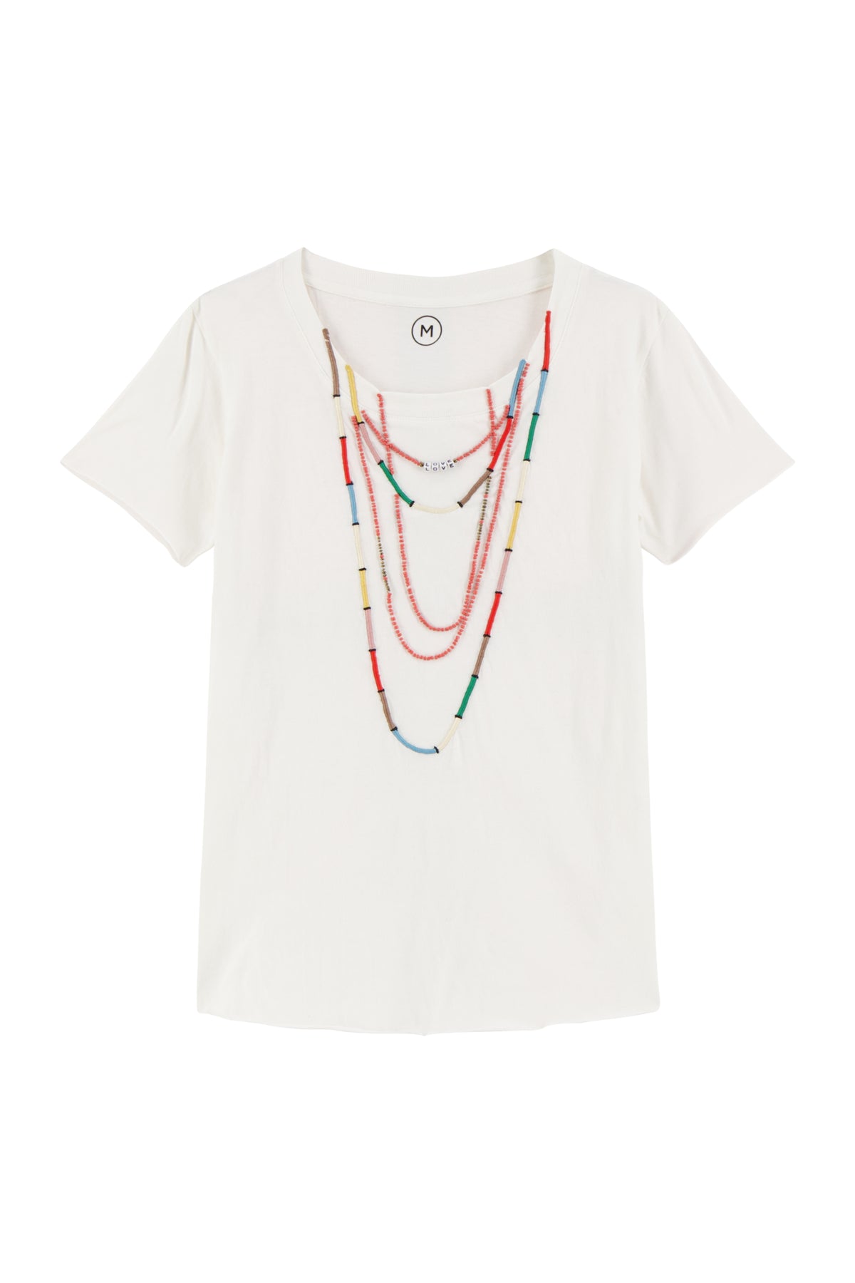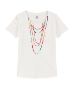 Le t-shirt Toro Beads, aux allures bohème-chic, joue l’illusion d’un collier de perles colorées brodées. Le détail qui change tout ? La petite touche “Happy” confère à la femme Leon & Harper une énergie only good vibes. À glisser sous une veste oversize ou à porter seul pour un effet bijou effortless.