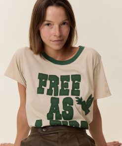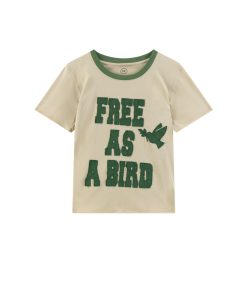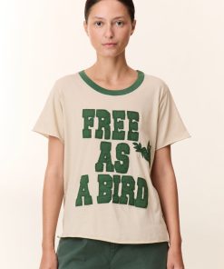 – Imprimé « FREE AS A BIRD » en tissu appliqué